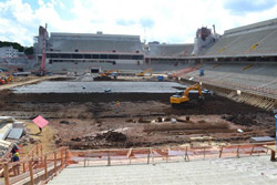 A fase de fundações também se encontra em reta final. As obras civis se concentram na instalação dos blocos que receberão os pilares de sustentação da nova cobertura, e na construção das lajes com o novo hall de acesso ao público, onde ficarão as lanchonetes e banheiros --a área VIP ficará no segundo nível destas lajes.