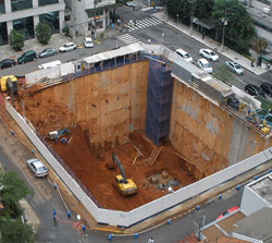 O principal desafio para a Geofix foi executar a obra, com elevado grau de complexidade, dentro do prazo definido pelo cliente. No projeto estava previsto a fundação dos cinco subsolos – sendo um com pé-direito duplo – com uma escavação de 20 metros. Para isso a Geofix executou paredes diafragma de 50 cm de espessura e com aproximadamente 24 metros de profundidade, com diafragmadoras de haste rígida, que garantiram uma melhor verticalidade e qualidade na escavação da parede.