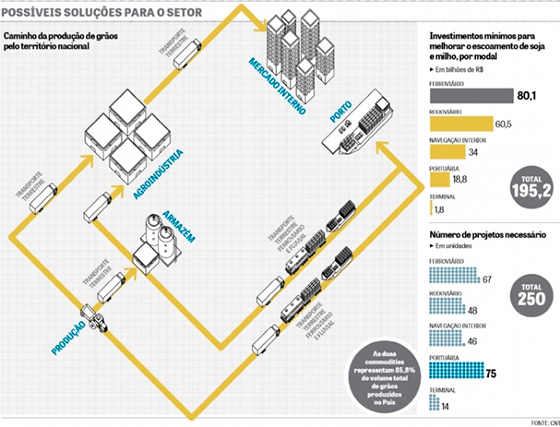 ...Segundo maior exportador de soja e milho do mundo, o Brasil perde em competitividade para grandes concorrentes como Argentina e Estados Unidos pela má qualidade da infraestrutura para o escoamento das commodities.