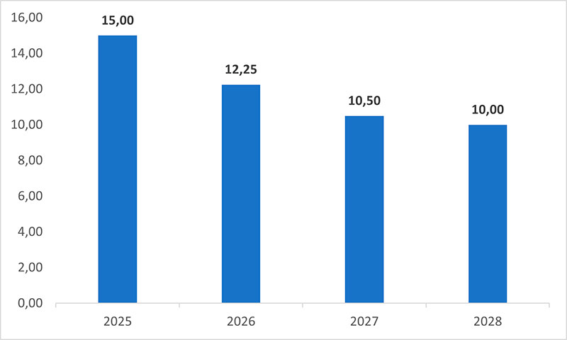 A política monetária também traz perspectivas mais favoráveis: o Boletim Focus indica expectativa de que a Selic caia para 12,25% até o fim de 2026, após permanecer elevada em 2025.