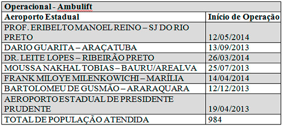 Somente aeroportos com vôos comerciais possuem o ambulift. Dos aeroportos administrados pelo DAESP, possuem os equipamentos os termi