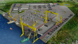 ...A Estaleiros do Brasil (EBR) inicia amanhã a construção dos pavilhões industriais do estaleiro em São José do Norte (RS), a 350 quilômetros de Porto Alegre, numa área que faz parte do porto organizado do município vizinho de Rio Grande. No local serão montados e integrados os módulos da P-74, a primeira plataforma da Petrobras para operar no modelo de cessão onerosa no campo de Franco, na área do pré-sal na Bacia de Santos.
