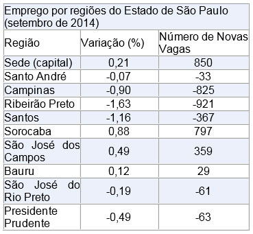 No Estado de São Paulo, o indicador apresentou estabilidade, com leve queda de 0,03% em setembro ante o mês anterior, com o saldo entre demissões e contratações ficando negativo em 235 trabalhadores. Com o resultado, o número de empregados na construção civil no Estado ao final de agosto somava 864,5 mil pessoas com carteira assinada. Das dez regiões pesquisadas, seis (Santo André, Campinas, Ribeirão Preto, Santos, São José do Rio Preto e Presidente Prudente) apresentaram queda no período.