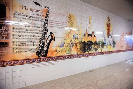 O trabalho com esmero e a experiência na finalização de grandes obras capacitaram o pedreiro de acabamentos Iraudo Pereira Cajado, de 35 anos, para um desfio especial: montar as 3.059 peças de azulejo em um dos acessos de passageiros da futura Estação Nossa Senhora da Paz, em Ipanema, uma das seis estações da Linha 4 do Metrô (Barra da Tijuca – Ipanema) no Rio de Janeiro. Como num enorme quebra cabeças, Iraudo e outros seis colaboradores do Consórcio Linha 4 Sul precisaram ter atenção e paciência. Foram cinco dias observando os catálogos numerados para posicionar e assentar os azulejos na parede. O painel, de 32 metros de cumprimento por 3,80 metros de altura, conta como a histór