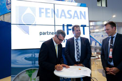 A AESabesp, organizadora da Fenasan (Feira Nacional de Saneamento e Meio Ambiente), e a Messe Munchen, organizadora da IFAT, (feira internacional de gestão de Água, esgoto, resíduos e matérias-primas, anunciaram uma parceria para a realização das futuras edições da Fenasan, já a partir de 2018. A ênfase do acordo é a consultoria técnica. Assim, juntamente com suas inúmeras associações parceiras, a IFAT organizará um painel de discussão na Fenasan 2018 e contribuirá para o planejamento de conteúdo do congresso realizado paralelamente, entre outros. Olavo Sachs, presidente da associação AESabesp e organizador da Fenasan, vê benefícios para sua feira na nova parceria: “