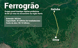 Com cerca de 1,1 mil quilômetros de extensão, a Ferrogrão vai conectar os centros produtores de grãos do Centro-Oeste ao Porto de Miritituba, no Pará, funcionando como uma alternativa à BR-163.