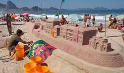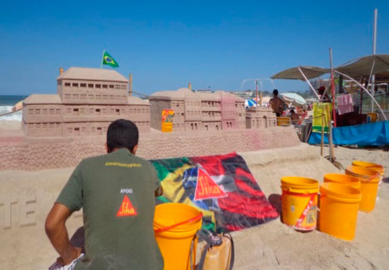 Quem passeia pela orla de Copacabana, no Rio de Janeiro, se surpreende com as esculturas feitas nas areias da praia pelo artista plástico Rogean Rodrigues. A primeira reação das pessoas é de admiração, impressionadas com as obras criadas pelo autor apenas com a matéria prima encontrada ali mesmo, a areia. O artista, que já possui 20 anos de trabalho, foi um dos escolhidos para homenagear os 100 anos de Cultura e Civismo, do Forte de Copacabana. O artista plástico esculpiu – em apenas cinco dias – toda uma estrutura alusiva ao Forte nas areias da praia. Desde 2012 a Sika é apoiadora de Rogean. Além da água, o escultor utiliza o impermeabilizante Sika 2,