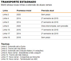 Desde setembro, o governo do Estado tem prorrogado prazos para que o consórcio Move SP conseguisse financiamento e voltasse a tocar o empreendimento. Mas as empreiteiras não conseguiram solucionar a falta de recursos.