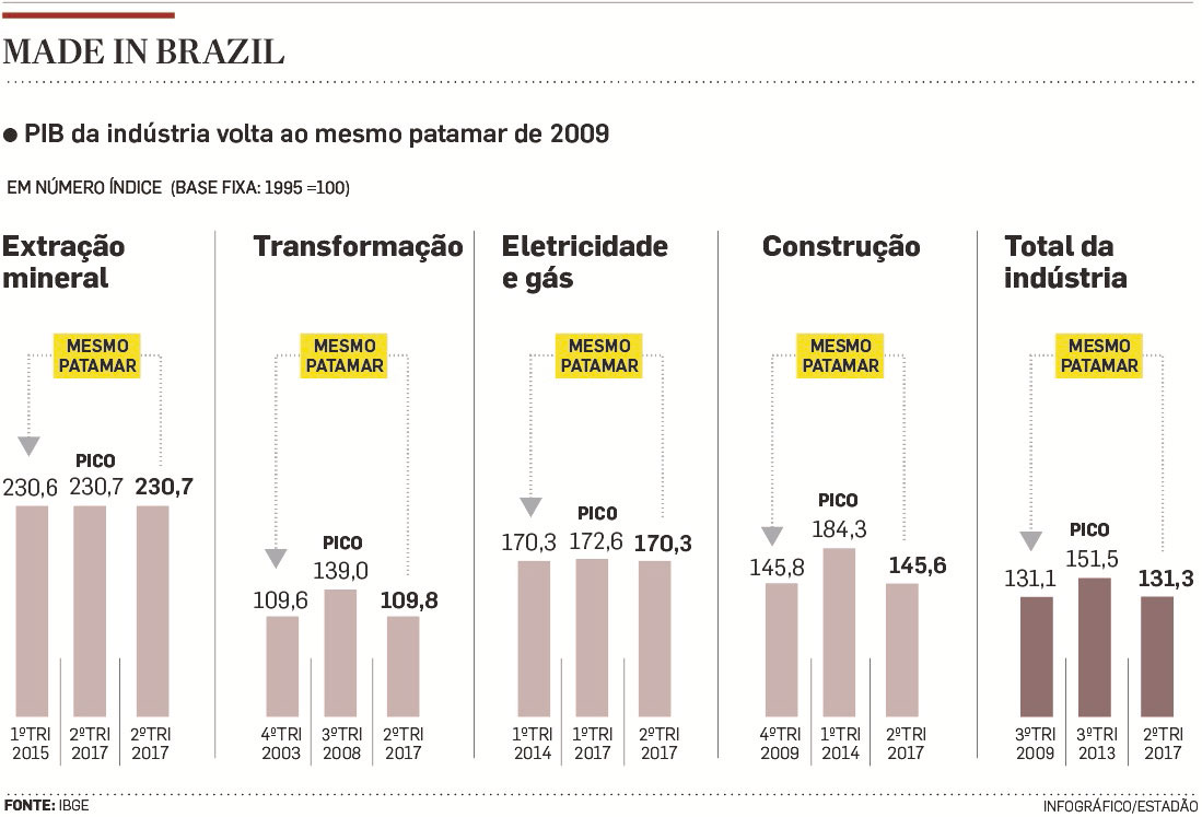 O resultado positivo do Produto Interno Bruto (PIB) no segundo trimestre, de crescimento de 0,2% ante o trimestre anterior, divulgado na sexta-feira pelo IBGE, sinalizou que a recessão brasileira caminha para o fim. Mas a indústria ainda causa preocupação. Os números mostram que o PIB industrial registrado entre abril e junho está no mesmo patamar do terceiro trimestre de 2009.