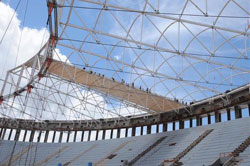 O consórcio responsável pelas obras do Estádio Nacional de Brasília Mané Garrincha iniciaram na quarta-feira (20) a instalação da membrana da cobertura. O processo deve durar até o final de março.