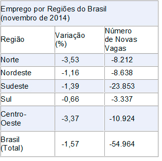 No mês, todas as cinco regiões do país apresentaram resultado negativo. Confira na planilha abaixo: