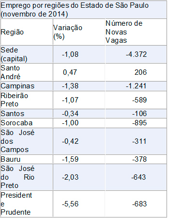No Estado de São Paulo, o indicador apresentou declínio de 1,05% em novembro ante outubro, com o saldo entre demissões e contratações ficando negativo em 9 mil trabalhadores. Com o resultado, o número de empregados na construção civil no Estado ao final de novembro somava 857,2 mil pessoas com carteira assinada. Das dez regiões pesquisadas, apenas Santo André não apresentou retração no período.