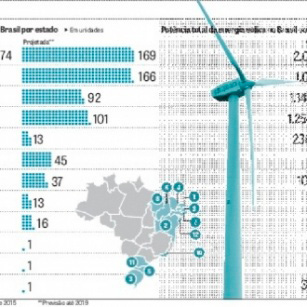 A Associação Brasileira de Energia Elétrica (Abeeólica) estima que o Brasil produz 6,1 megawatts de energia eólica. Desse total, 76,8% são gerados em usinas do Nordeste. Com a entrada em funcionamento de projetos que já foram contratados em leilões de energia esse índice deve chegar a até 86,7% em 2019. Conforme a associação, o único estado que receberá novos parques eólicos até 2019 fora do Nordeste é o Rio Grande do Sul, que saltará de 43