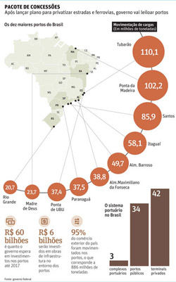 Haverá a concessão de cinco portos públicos, três novos (Manaus, Ilhéus e Vitória) e dois já existentes (Imbituba e Ilhéus)
