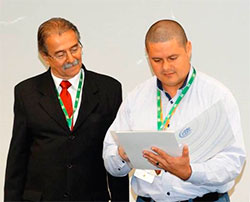 Schnneider Roth, gerente Nacional de Vendas, recebe o Certificado pela Eucatex