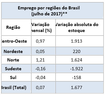 ...Pela primeira vez depois de 33 meses de queda consecutivas, o nível de emprego na construção civil brasileira voltou a subir. Em julho, houve alta de 0,07% na comparação com junho. Com a contratação de 1.677 trabalhadores, o estoque de trabalhadores foi de 2,457 milhões para 2,458 milhões. Em 12 meses, entretanto, a queda é de 10,31% e na comparação com julho de 2016, a redução chega a 12,63%.