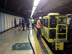 ...Enquanto avançam as obras da Linha 4 do Metrô (Barra da Tijuca – Ipanema), os sistemas de energia que vão conectar a nova linha com a Linha 1 do Metrô já estão sendo montados. Os serviços são feitos nas madrugadas, entre 2h e 4h30, quando as composições não estão operando e a linha pode ser desenergizada. Na primeira etapa, os cabos foram lançados entre as estações Botafogo e Cantagalo, num total de 26.100 metros de extensão. Agora, os colaboradores da Linha 4 do Metrô executam as conexões desses cabos a cada 300 metros.