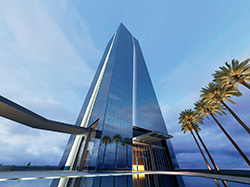 A fachada totalmente em pele de vidro sobre estrutura mista, de concreto e aço, favorece a luminosidade natural dos pavimentos e permite uma vista panorâmica de 360º para o entorno. Visando total flexibilidade, os pavimentos foram projetados com as respectivas áreas técnicas e banheiros junto ao core – núcleo central do empreendimento - o que possibilita ao locatário maior liberdade na escolha do layout da sua empresa.