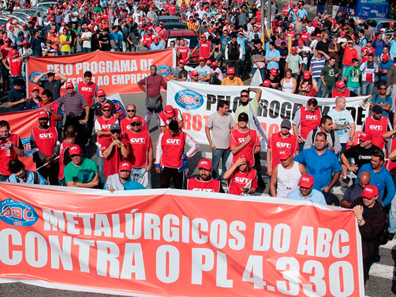 “O PL 4330 ao invés de regulamentar os já terceirizados, melhorando as condições de trabalho e renda, como muitos dizem, na verdade visa dar garantias jurídicas para os empresários precarizarem as condições de trabalho no Brasil”, dizem as centrais.