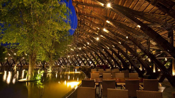 O local foi apelidado de Bamboo Wings, por sua forma lembrar as asas de um pássaro. Os clientes que visitam o restaurante podem caminhar e se acomodar em volta do espelho d’água, repleto de árvores, que complementam o ambiente natural criado pelos arquitetos.